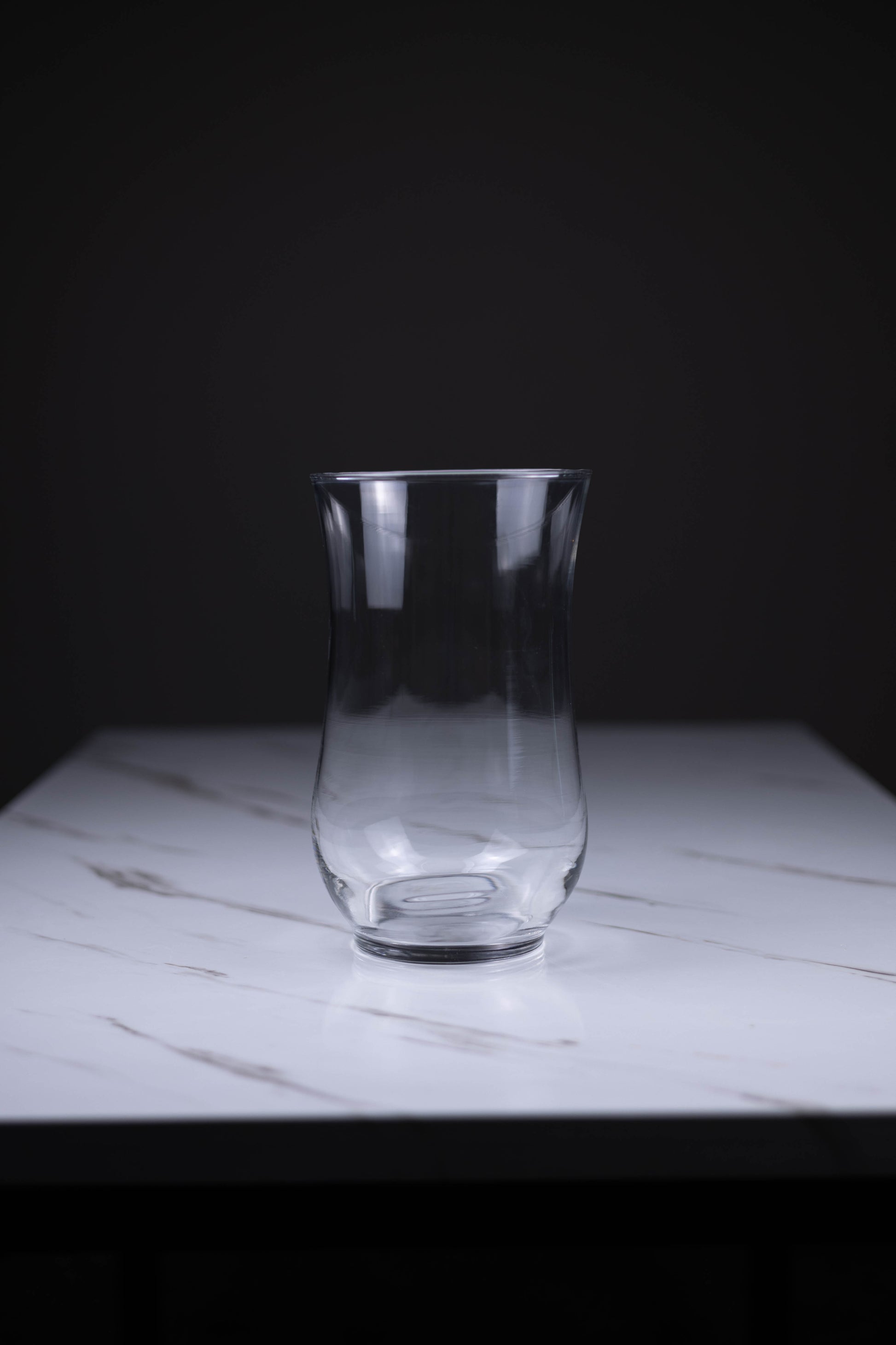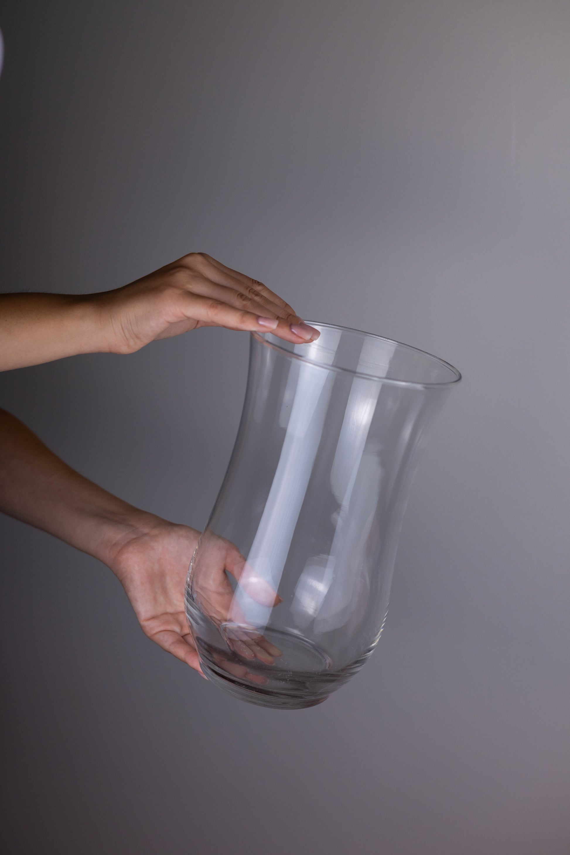 A stylish curved glass vase with a soft silhouette, ideal for lush bouquets or romantic centerpieces. Its elegant shape adds a delicate touch to any floral display.