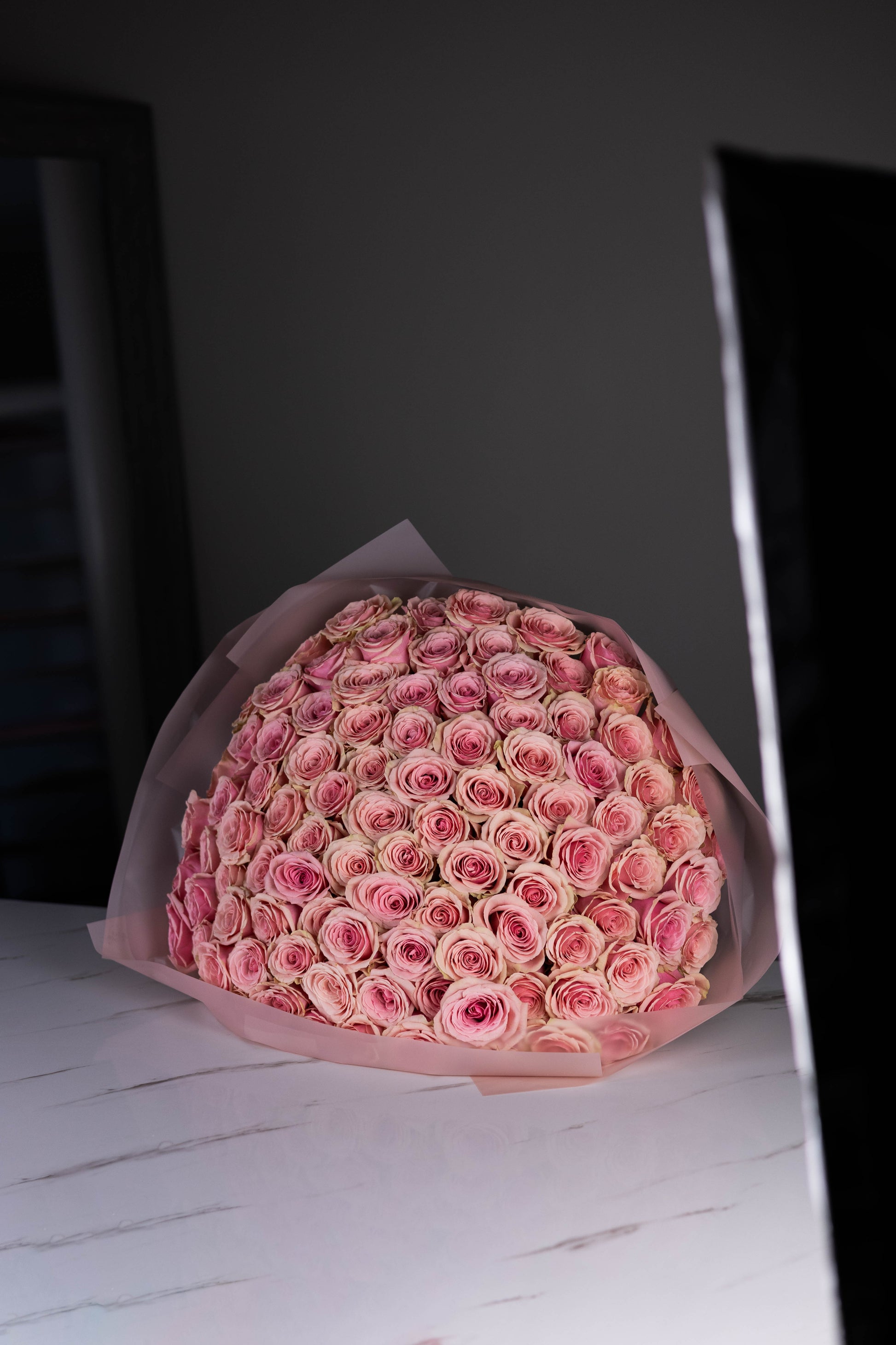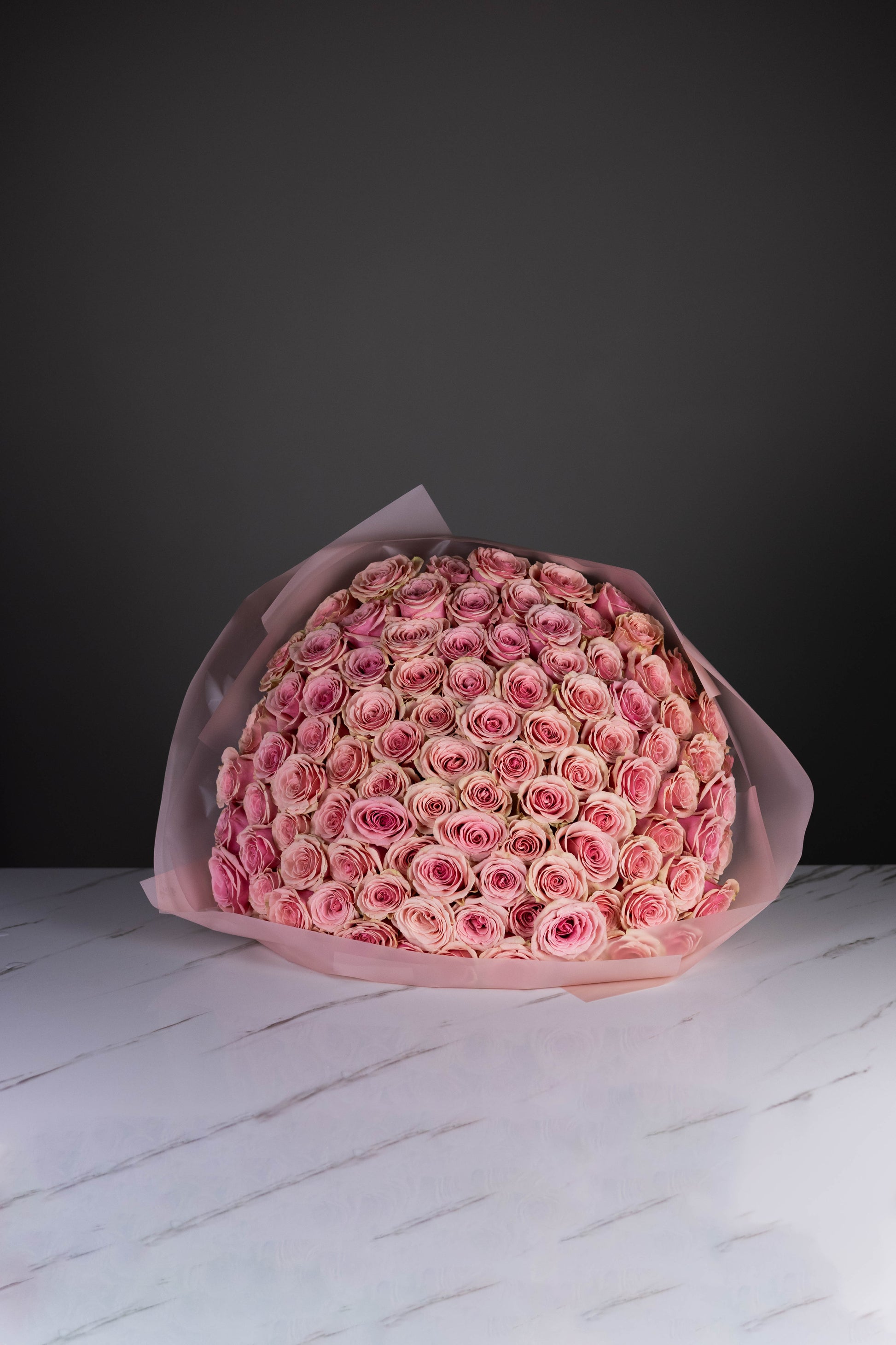 Voluminous, symmetrical, and endlessly elegant — Geraldine is a pink rose that makes no apologies for her beauty. With her flawless, spiraled petals in soft, silken blush, she captures the essence of classic femininity with a modern edge. Each bloom opens into a perfect rosette, making this bouquet a statement of grace, charm, and unmistakable sophistication.